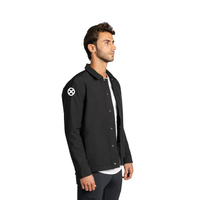 Black embroidered shop jacket. Breathable, flex-fit, with front snap buttons.