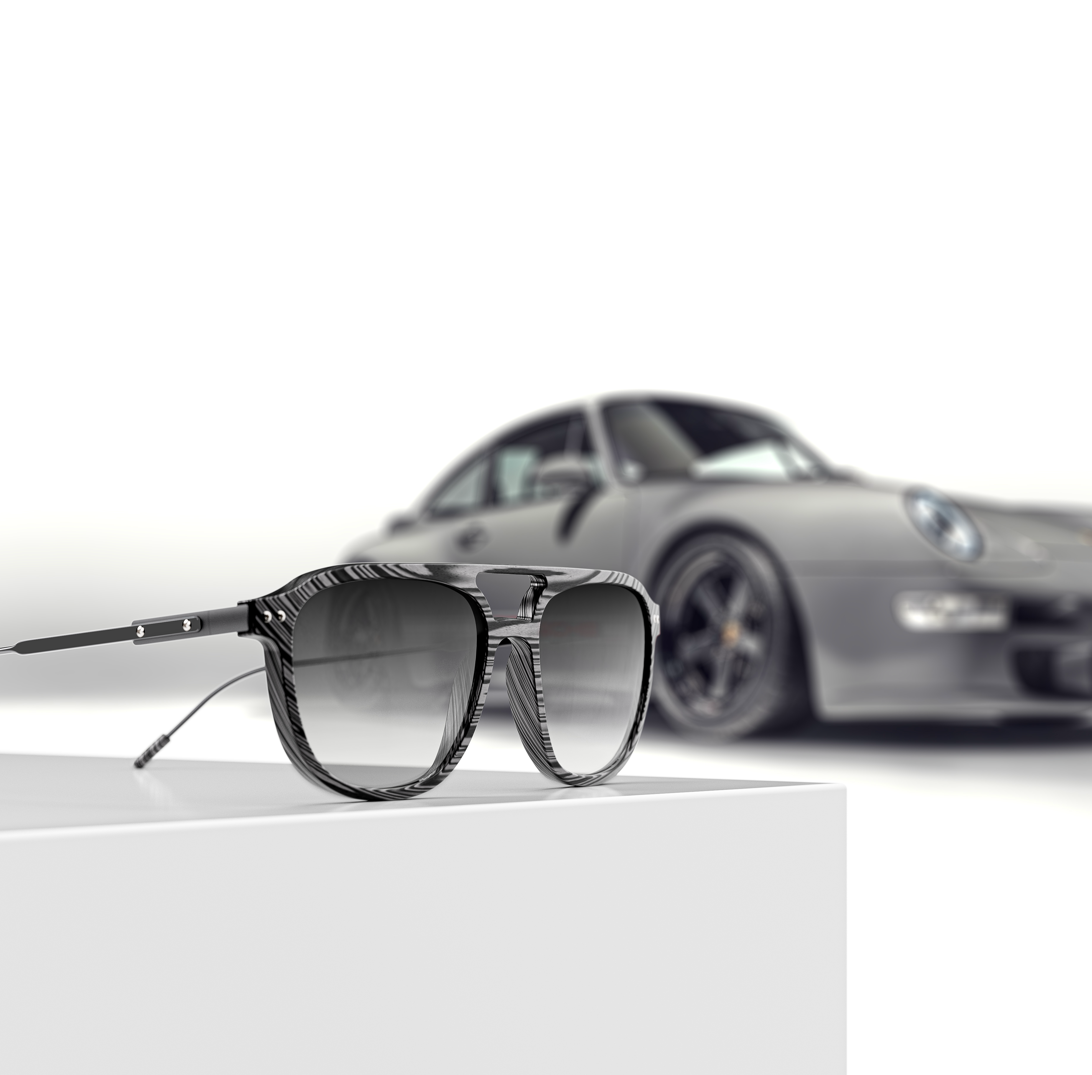 The Squared Pilot design, slightly oversized, captures the essence of the iconic GW 993 "The Sterling Silver", blending CNC machined carbon fiber and titanium for an unparalleled look and comfort.