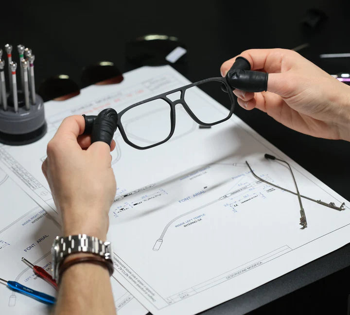 This eyewear frame features a unique UDCT® carbon fiber frame, Beta-Titanium temples, and carbon fiber end tips, a revolutionary concept in the eyewear industry.